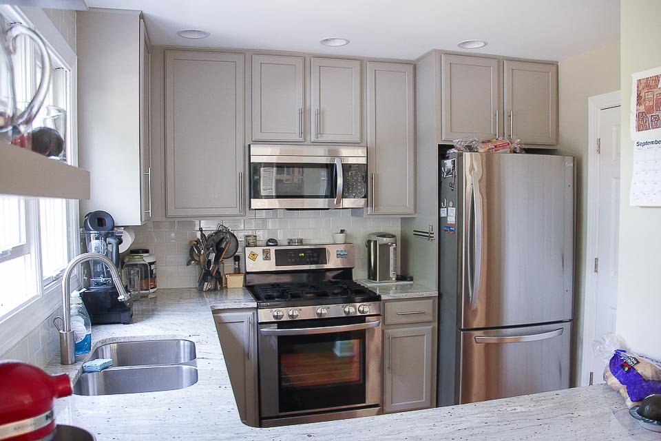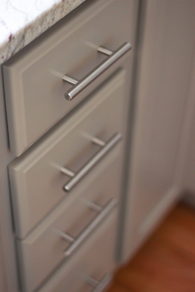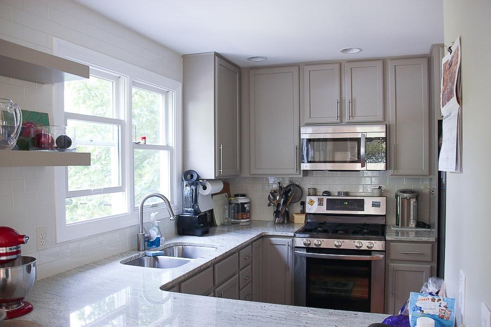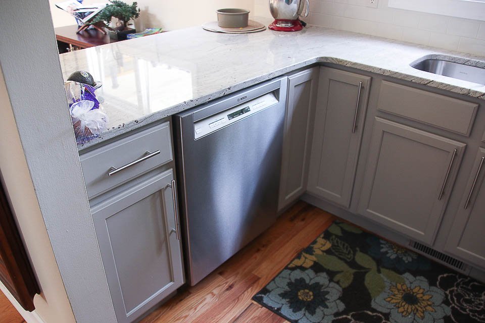 Durham Kitchen Remodel Kitchen Durham Kitchen Remodel Kitchen remodel project with replacements and additionsThe cabinets were painted in a modern gray, soft close hardware was added to the drawers and doors and new pulls were installed. A cabinet over the peninsula was replaced with floating shelves for easier access, and molding was added to the tops of the cabinets for a finished look. CONTACT US Make The Right Choice Get In Touch Contact us